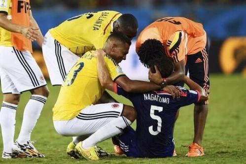 Tras el pitazo final, Yuto Nagatomo, desolado, se sentó sobre el césped. Al rato, el colombiano Freddy Guarín, en un gesto que lo enaltece, se acercó al japonés (su compañero de equipo en el Inter de Italia), lo abrazó e intentó consolarlo.