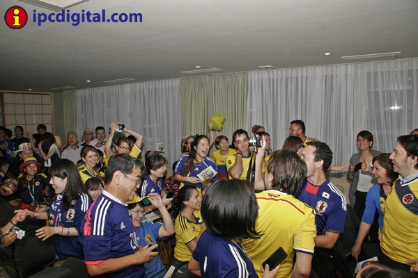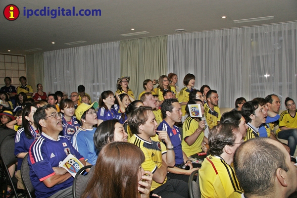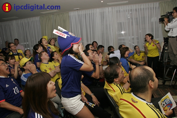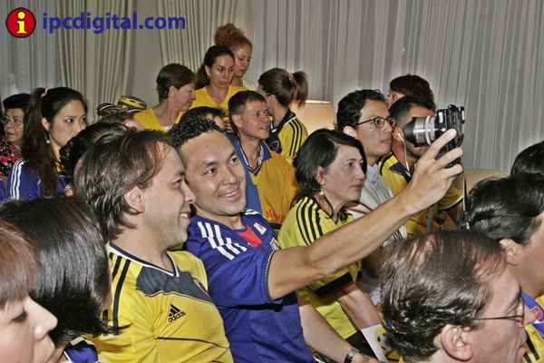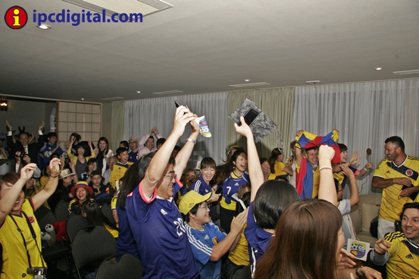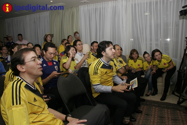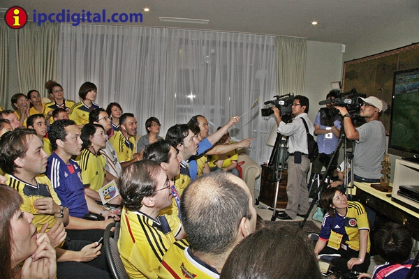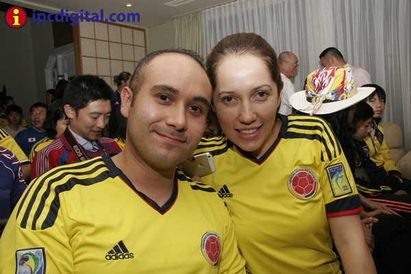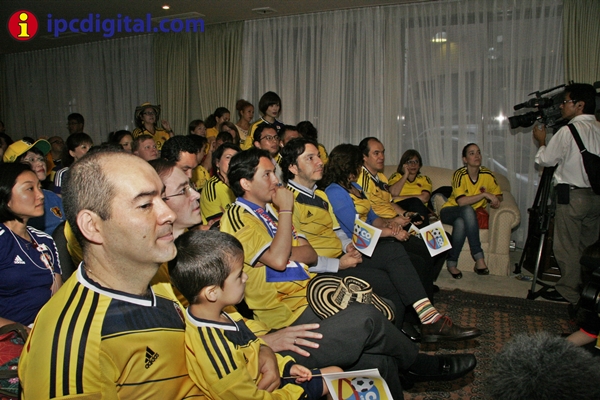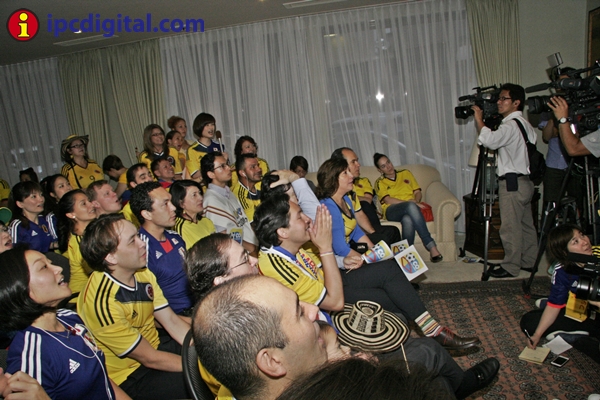 Con una visita especial, la ministra de Educación, María Fernanda Campo, diplomáticos, personal administrativo y público en general entre residentes colombianos y japoneses, la residencia de la Embajada de Colombia vivió una fiesta de confraternidad para ver por televisión, desde las 4,40 hrs de esta mañana, el encuentro entre las selecciones de Colombia y Japón por el Mundial Brasil 2014.