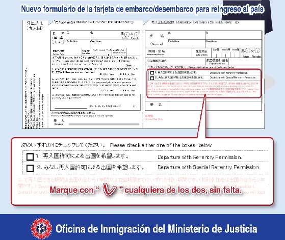 Por eso, la nueva tarjeta de embarque/desembarque presenta ahora dos cajas de selección. Una para indicar con una flecha si la salida del país se realiza con permiso de reentrada y otra cuando se hace con el permiso de reentrada especial.