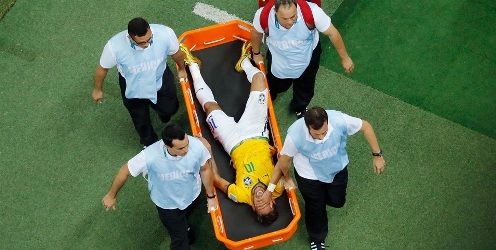 Neymar sufrió un rodillazo del lateral Camilo Zúñiga a los 86 minutos del partido que selló la clasificación de la selección brasileña a las semifinales frente a la de Alemania al imponerse por 2-1 a Colombia.