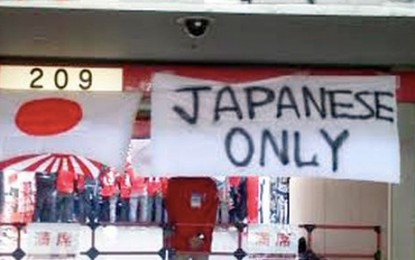 En marzo de este año, un grupo de hinchas del equipo de fútbol Urawa Red desplegó en un partido de la J. League una pancarta que decía “Solo japoneses”. Como castigo, la escuadra nipona jugó su siguiente partido en casa sin espectadores.