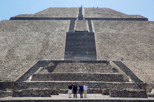 El primer ministro japonés, Shinzo Abe, visitó el sábado la Zona Arqueológica de Teotihuacan acompañado del presidente de México, Enrique Peña Nieto, y de sus respectivas esposas, Akie Abe y Angélica Rivera.
