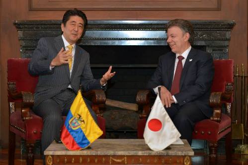 Abe, que está de visita en Colombia como parte de una gira por América Latina y el Caribe, se reunió en Bogotá con Santos, con quien analizó el estado de las relaciones bilaterales y asuntos de interés mundial.