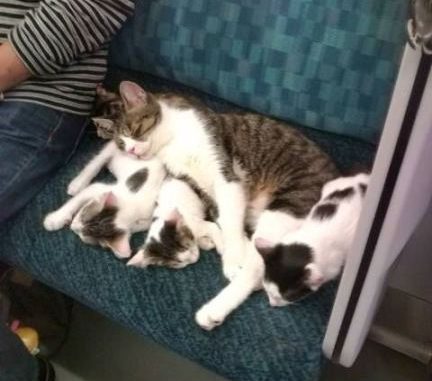 El gato se siente con tanto derecho como un humano a viajar en tren (y ocupar un asiento).