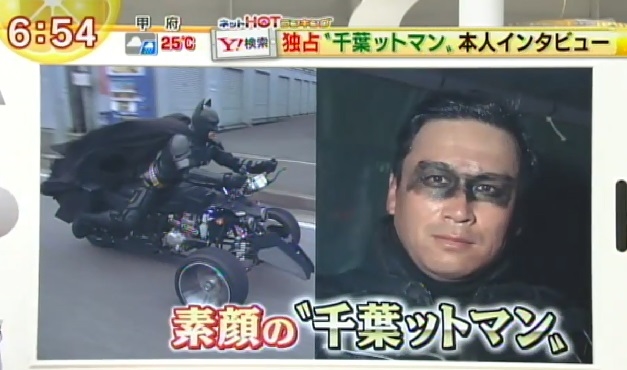Se hace llamar Chiba-man, que es la conjunción de Chiba-ken o provincia de Chiba, donde reside, y hombre en inglés. Tiene 41 años y es soldador profesional especializado en containers y según ha contado el blog japonés Naver, este hombre usa la autopista para ir a trabajar disfrazado de Batman todos los días!