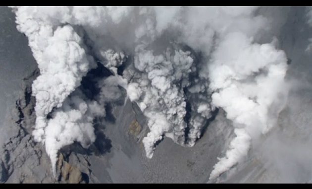 La televisión Asahi presentó imágenes de la fuerza con que el Ontakesan lanza sus cenizas desde que entró en erupción ayer. Las tomas muestran los refugios ubicados en las laderas del monte donde varios montañistas fueron sorprendidos por el fenémeno. (ipcdigital)