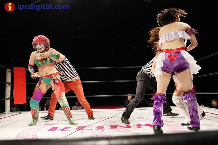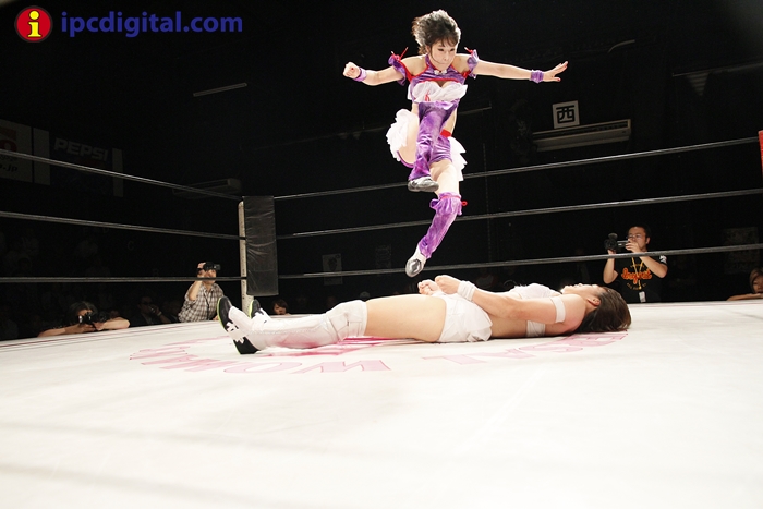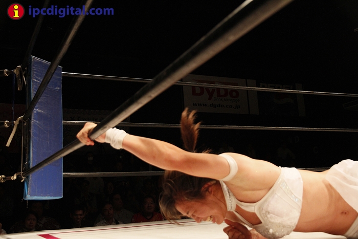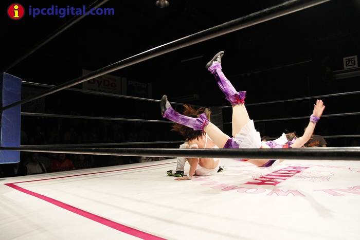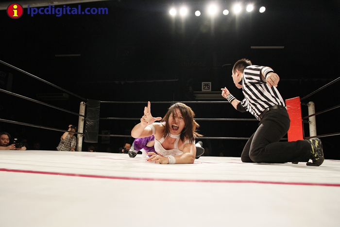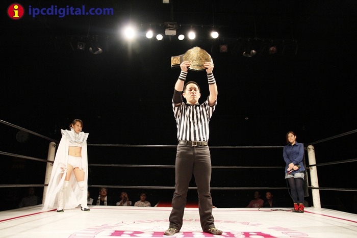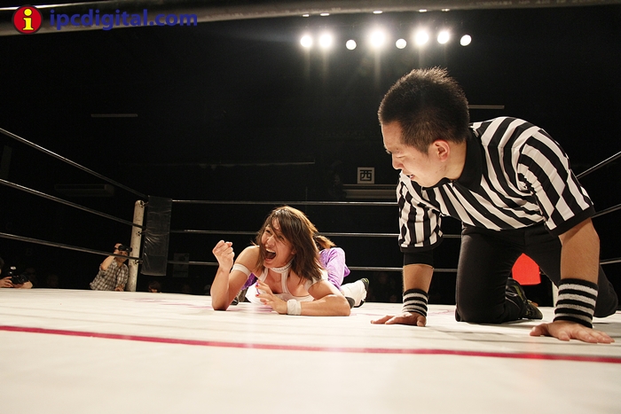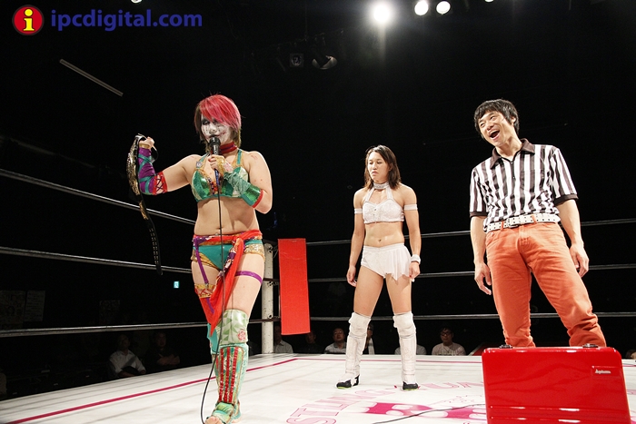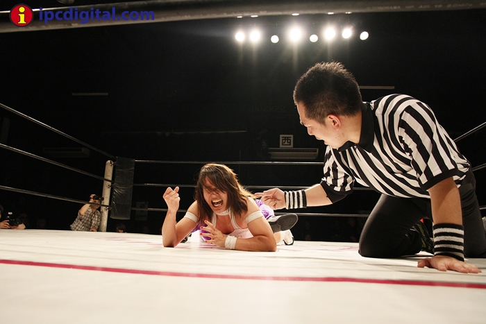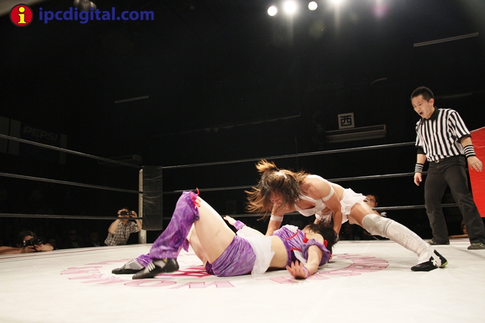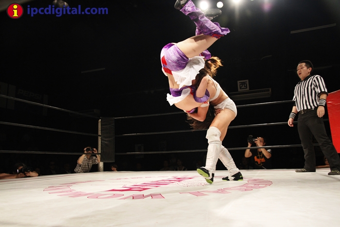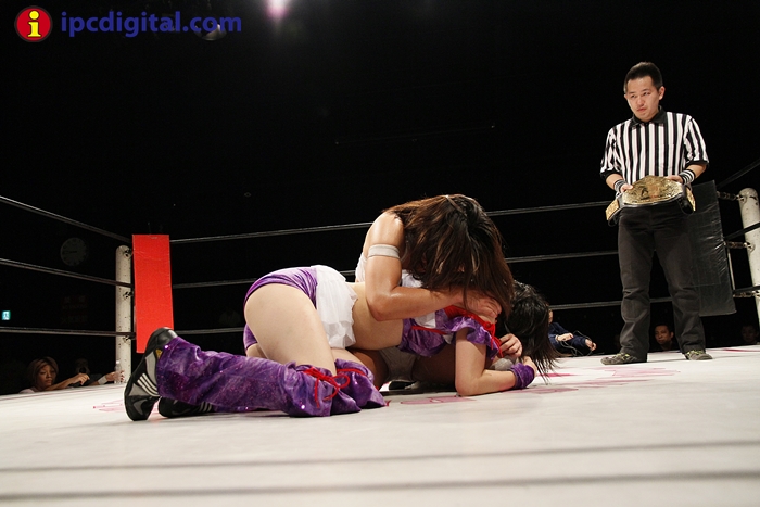 Syuri, la doble campeona japonesa de kick boxing y lucha libre (puroresu), hizo valer anoche su título de campeona en el torneo de lucha femenina «Reina ante su guapa compatriota Makoto.