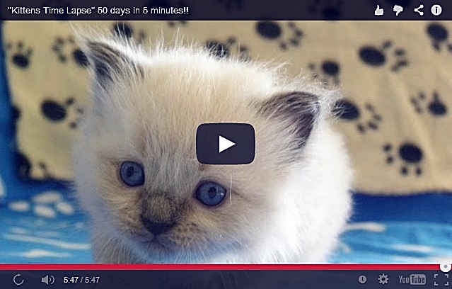 Un vídeo nos muestra en breves secuencias los primeros 50 días de un gato. Bueno, de cuatro lindos gatitos, desde el día de su nacimiento cuando entran en la palma de una mano y solo viven para buscar las tetas de la madre.