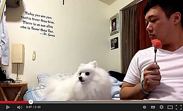 Este perrito pomerania se ha convertido en un suceso en YouTube. Su gracia? que ama la sandía, pero con orgullo canino, si lo hubiere, mira de reojo, una y otra vez, cómo su dueño intenta comerse un trozo de la fruta.