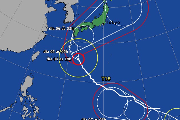 El tifón sigue avanzando hacia el norte, y en la noche del domingo 4 alcanzará su máxima aproximación a la isla de Minami daito, después se acercará a las regiones de Kyushu, Shikoku y Chugoku, y avanzará hacia Kinki, Chubu y Kanto, los días 5 y 6.