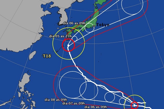 La Agencia reportó una tormenda feroz en el Pacífico, frente a Okinawa y Amami, y dijo que las lluvias serán fuertes en la región de Tokai. A esta hora, las lluvias son intensas en la mitad de Japón lo que ha provocado alertas de posibles deslizamientos de tierra en zonas montañosas y posibles inundaciones.