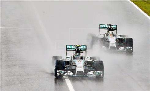 El inglés Lewis Hamilton (Mercedes) reforzó su liderato en el Mundial de Fórmula Uno al ganar este domingo, por delante de su compañero y rival alemán Nico Rosberg, el Gran Premio de Japón, marcado por la lluvia y en el que abandonó el español Fernando Alonso (Ferrari) en la cuarta vuelta.