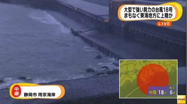 A esta hora el tifón está dejando la región de Tokai (Shizuoka, Aichi, Gifu, Mie) y las Islas de Izu, y para el mediodía de hoy estaría entrando con toda la fuerza de sus vientos y torrenciales lluvias a la región de Kanto. La Agencia Meteorológica de Japón alerta a los pobladores sobre tormentas eléctricas, caídas de sedimentos y olas altas.