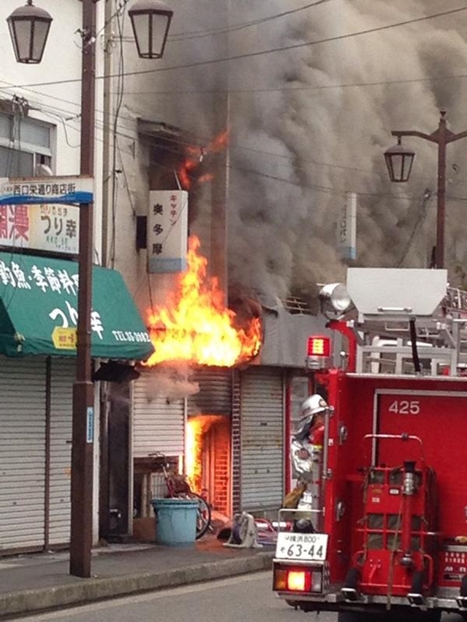 Alrededor de las 6:35 de esta mañana un incendio se desató en un restaurante frente a la estación Keikyu Kurihama de Yokosuka, en la provincia de Kanagawa. Las llamas destruyeron cinco tiendas, mientras que se reportó que una mujer de 80 años de edad y hombre de 68 años, que estaban en uno de los locales incendiados, tuvieron que ser llevados en ambulancia.