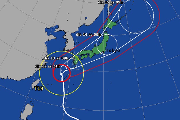 Este lunes 13 el tifón golpeará el sur de Kyushu con mucha fuerza e irá aumentando su velocidad rumbo a la región de Kinki con Mie, Osaka, Hyogo. El día 14, llegará a Tokai, donde está Shizuoka, Aichi, y Gifu, y a Kanto que es Tokio y alrededores. (ipcdigital)