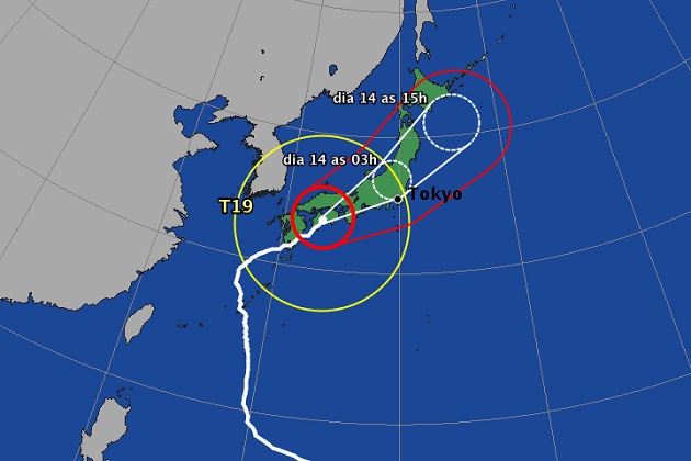 La Agencia de Meteorología de Japón informó hoy de que el súper tifón, que avanza a 35 kilómetros por hora, tocó tierra esta mañana en la isla de Kyushu y que la madrugada del martes podría llegar a Tokio y dirigirse más tarde dirección noreste, donde se encuentra la central de Fukushima.