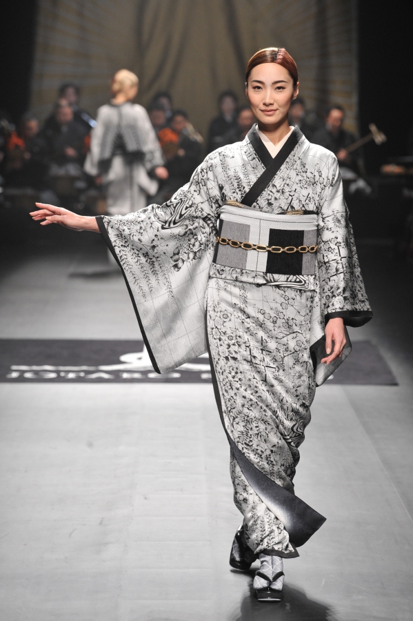 Las modelos niponas lucieron los kimonos sobre el escenario cual «kokeshi» (muñeca tradicional japonesa), deslizando sus pies suavemente y agitando con delicadeza las mangas de la prenda como si de las alas de una mariposa se tratase.