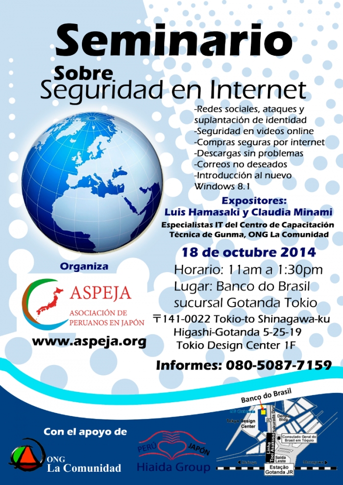 Estos serán dos de los temas de actualidad que serán abordados en el Seminario de Informática que se realizará este sábado 18 de octubre en la sede del Banco do Brasil de Gotanda, organizado por la Asociación de Peruanos en Japón (ASPEJA)