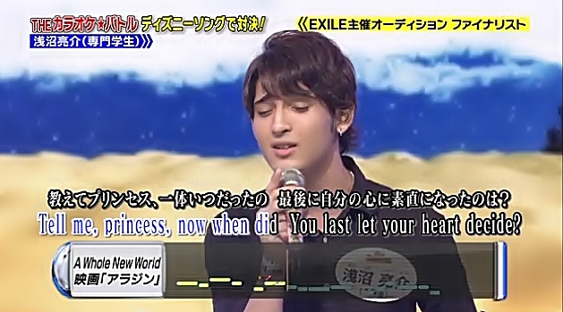 Cantando a dúo con su compañera de live Moeka Hirai, el peruano hizo llorar al público con su versión de «A whole new world», canción emblemática de la película «Alladín» de Walt Disney. La guapa y popular idol Tomomi Shimura y Masato Sakae, el hombre que durante años fuera presentador del Kohaku Uta ga sen de NHK, se deshicieron en palabras de admiración hacia el dúo que apenas tiene dos meses de formado, pero las miradas fueron para el peruano.