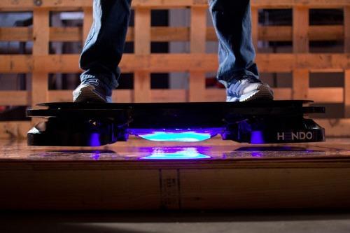 El “Hendo” se basa en cuatro motores en forma de disco que generan un campo electromagnético sobre una superficie conductora construida con láminas de cobre, que a su vez crea un campo opuesto dentro de la superficie. Los dos campos a continuación, se repelen entre sí, lo que permite al skate volar a una pulgada del suelo.