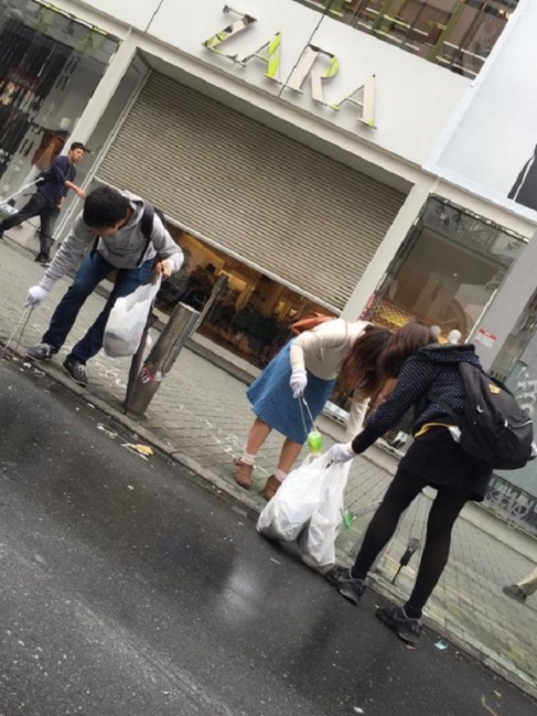 Sin embargo, el sábado 1 grupos de chicos voluntarios salieron a recoger la basura diseminada en Shibuya y compartieron su experiencia en Twitter, subiendo fotos de su labor de limpieza.