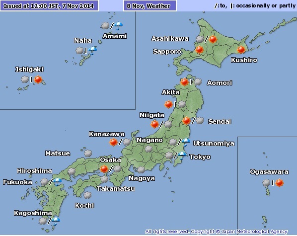 Vea el estado del tiempo para todo Japón para la semana del 8 al 14 de noviembre.