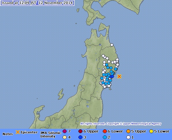 La Agencia Meteorológica de Japón reportó un segundo movimiento sísmico a las 12.05 horas con una magnitud de 4 grados con epicentro frente a la costa de Miyagi a 50km de profundidad.