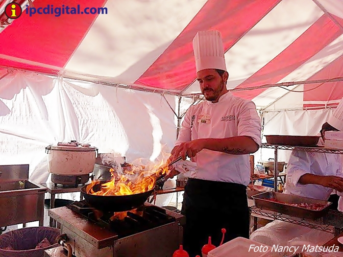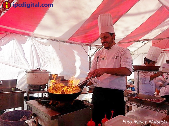 El chef invitado Francesco de Sanctis sirvió lomo saltado y el público japonés se entusiasmó con el chancho al palo.