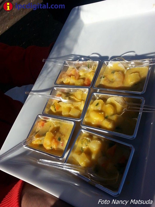 El público japonés aprobó el anticucho y el pollo a la brasa y recibió una degustación de platos típicos como causa limeña, escabeche de pescado, sopa chairo con chuño, carapulcra, locro de zapallo, humitas de maíz morado y budín de quinua.
