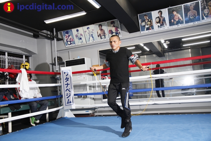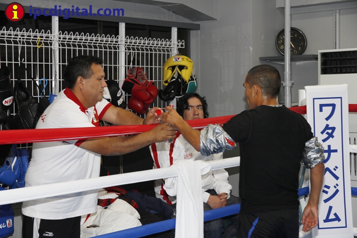 Rossel hizo su ingreso al cuadrilátero del Gimnasio Watanabe en Tokio a las 16.00 horas, dos de la mañana hora peruana, acompañado de su entrenador Oscar Coronel y el promotor Jorge Bartra.