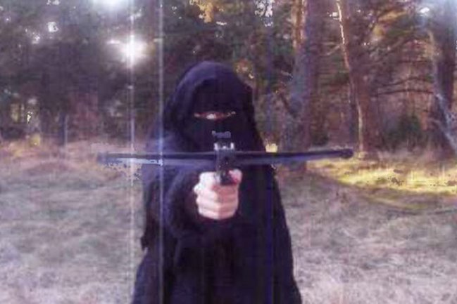 Con él aparece en unas fotos publicadas por el diario «Le Monde», en las que se la ve totalmente cubierta de negro y posando con una ballesta apuntando a la cámara, durante una de sus frecuentes visitas a Djamel Beghal, acusado de organizar atentados en Francia.