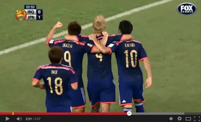La selección de Japón, dirigida por el mexicano Javier Aguirre, sumó su segunda victoria en la Copa de Asia de fútbol al derrotar por la mínima a Irak en partido del grupo D de la competición, en el que Jordania goleó a Palestina (1-5) en el otro encuentro con cuatro goles de Al Dardour.