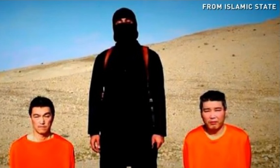 Junto a ellos aparece un combatiente encapuchado que exige en inglés con acento británico al primer ministro de Japón, Shinzo Abe, el rescate y le culpa por haber ofrecido 200 millones de dólares de ayuda a los países que colaboren en la lucha contra el EI.