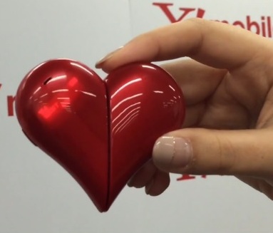 El dispositivo, que se llama Heart (¿qué otro nombre podría tener?), tiene forma de corazón cuando está en “reposo”. Si su propietario recibe una llamada o quiere utilizarlo, solo tiene que darle vuelta por la mitad y se transforma en uno convencional.