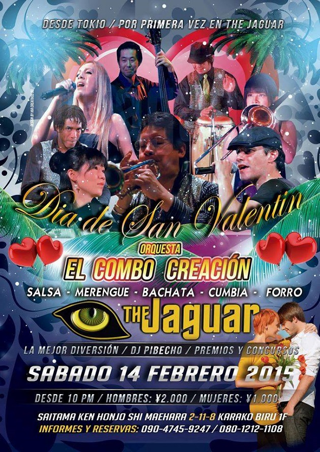 La orquesta «El Combo Creación» del peruano Moisés Auris se presentará por primera vez en The Jaguar, la discoteca de moda ubicada en Honjo, Saitama, el próximo 14 de febrero, Día de los Enamorados.