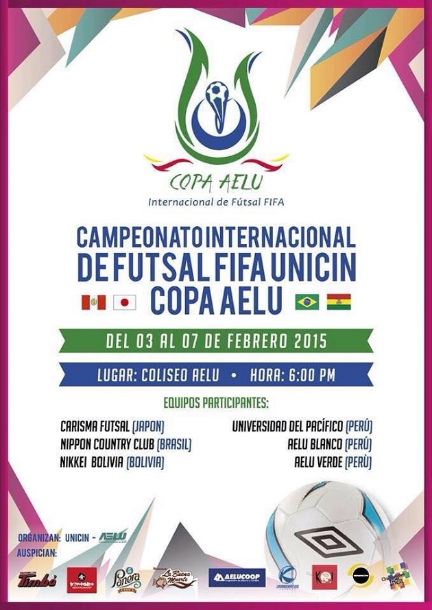 El club Carisma Futsal, uno de los referentes de la comunidad deportiva peruana en Japón, viajó a Lima para participar en el torneo internacional FIFA Unicin Copa Aelu 2015 de fútsal con equipos de Bolivia, Brasil y Perú.