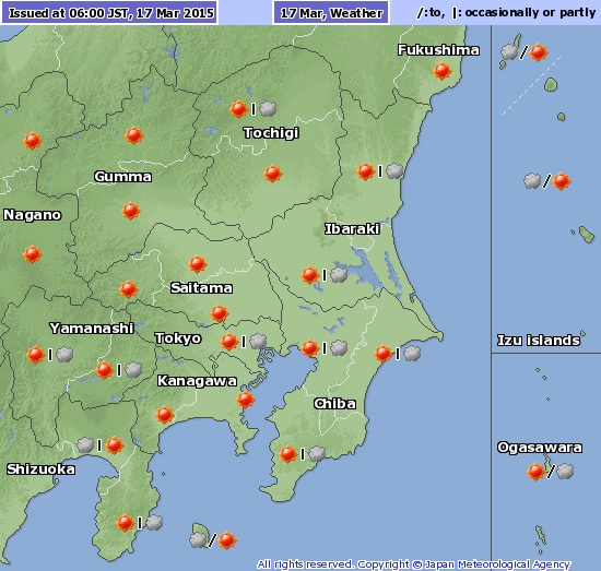 La Agencia Meteorológica de Japón dijo que hoy maertes 17 de marzo la temperatura subirá en todo el país y llegará a 19ºC en la región de Kanto y a 22ºC en Tokai.