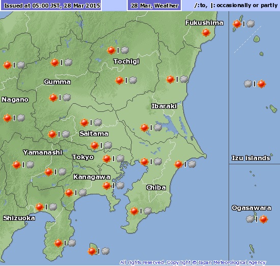 2015/03/28 Se espera 20ºC en Nagoya, 19ºC en Kanagawa y despejado en Tokio
