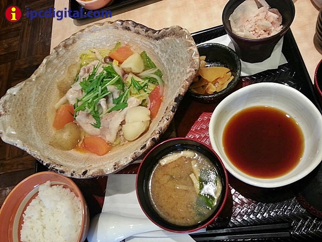 Yongenton to tappuri yasai no mushi nabe teishoku es un plato hecho al vapor con carne de cerdo, muchas verduras, papas y tomate que hace parte del menú de la prestigiosa cadena de restaurantes Ootoya.