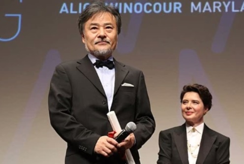 El director Kiyoshi Kurosawa. Tras él, la presidenta del jurado Isabella Rossellini.