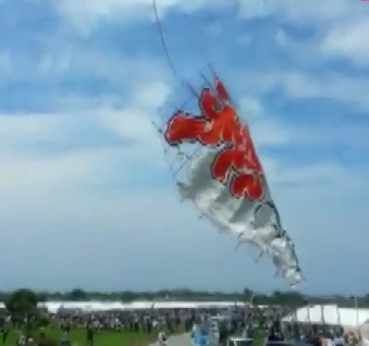 El cometa con estructura de bambú medía 12 metros por 13 metros y su vuelo formaba de un festival que se estaba realizando en un parque.