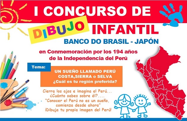 El Banco do Brasil Japón anunció la realización del 1° Concurso de Dibujo Infantil como parte de la conmemoración del 194 Aniversario de la Independencia del Perú cuya fecha central es el 28 de julio.