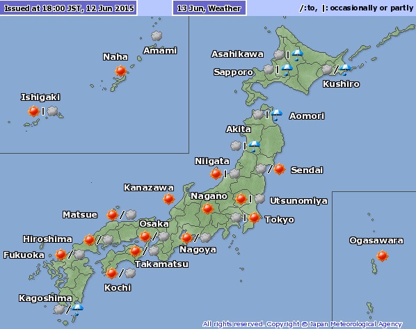 La Agencia Meteorológica de Japón dijo que para este sábado 13 de junio espera temperaturas mayores a 30°C en varias partes del país tras tres días de lluvias estacionales.