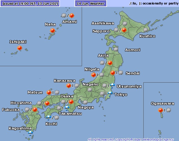 Domingo nublado con lluvias ocasionales en Tokio y alrededores