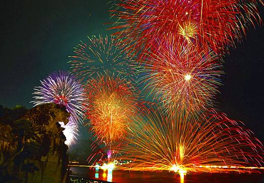 7. Aichi – Gamagori Matsuri Noryo Hanabio Taikai en Takejima futou. 26 de julio, 19:30~21:00 蒲郡まつり納涼花火大会, 竹島ふ頭 4.000 fuegos artificiales http://www.city.gamagori.lg.jp/unit/kankoshoko/gamamatu.html