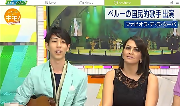Los dos artistas peruanos se presentaron en la edición de la tarde del programa News no Kimo de la plataforma de televisión on line Houdoukyoku de la cadena FujiTV y fueron entrevistados por la famosa presentadora de noticias Kikue Nishiyama.