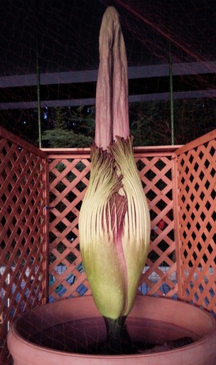 Conocida también como «flor cadáver» el aro gigante es famoso por su olor a carne podrida, cuyo objetivo es atraer insectos para la polinización.