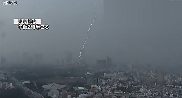 A las 16:30, aproximadamente, poderosos rayos produjeron cortes de energía eléctrica en varias partes de la región de Kanto. En la provincia de Ibaraki unas 4.200 casas quedaron sin luz y en Setagaya, Tokio, el apagón afectó a 1.100 viviendas. Otras 2.500 viviendas fueron afectadas en las ciudades de Hino y Mitaka.
