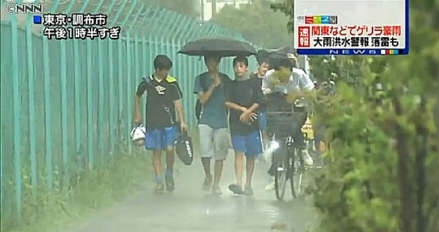 Solo en Tachikawa y Higashi Yamato, las precipitaciones en 10 minutos desde las 13-40 fueron de 20 mm provocando preocupación y los avisos de alerta..