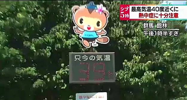 NHK dijo que la localidad de Tatebayashi, provincia de Gunma, registró durante 8 minutos una temperatura de 39,8ºC y que el calor se hizo “infernal” en Date-shi, Fukushima, cuando se llegó a 39,7 durante 7 minutos poco después de las 13 horas.